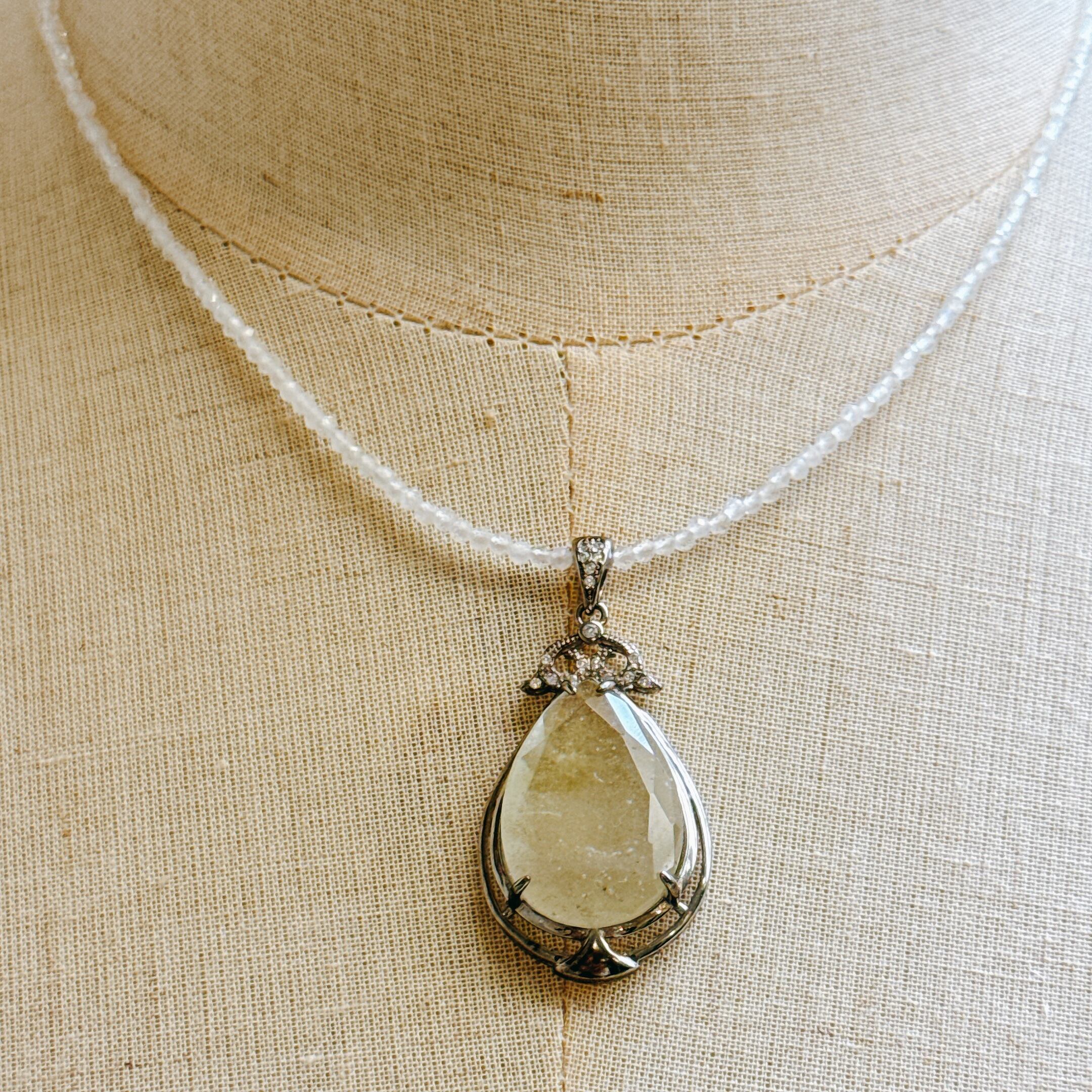 【リビアングラス】ペンダントトップ(ムーンストーンチェーン付き)