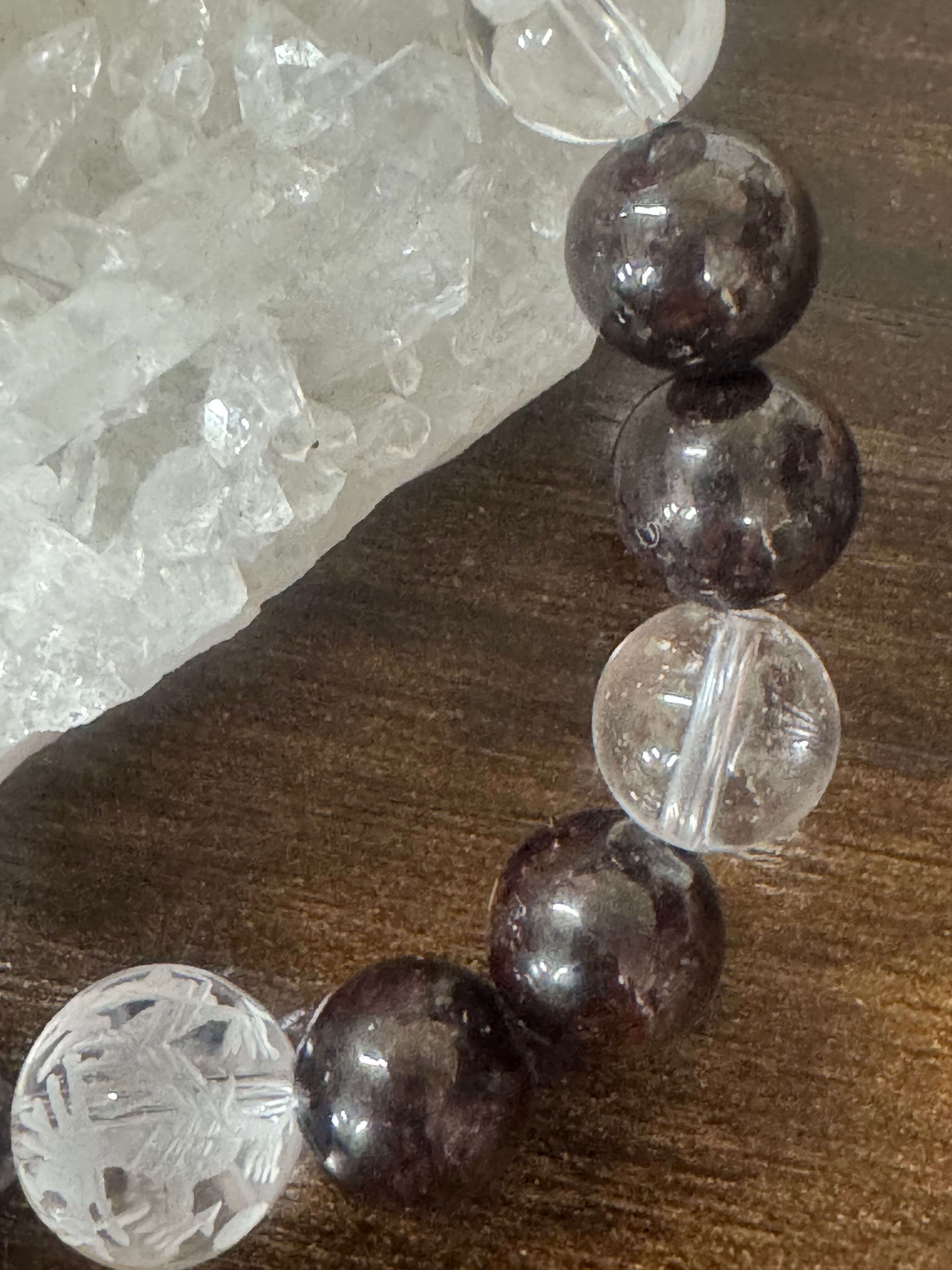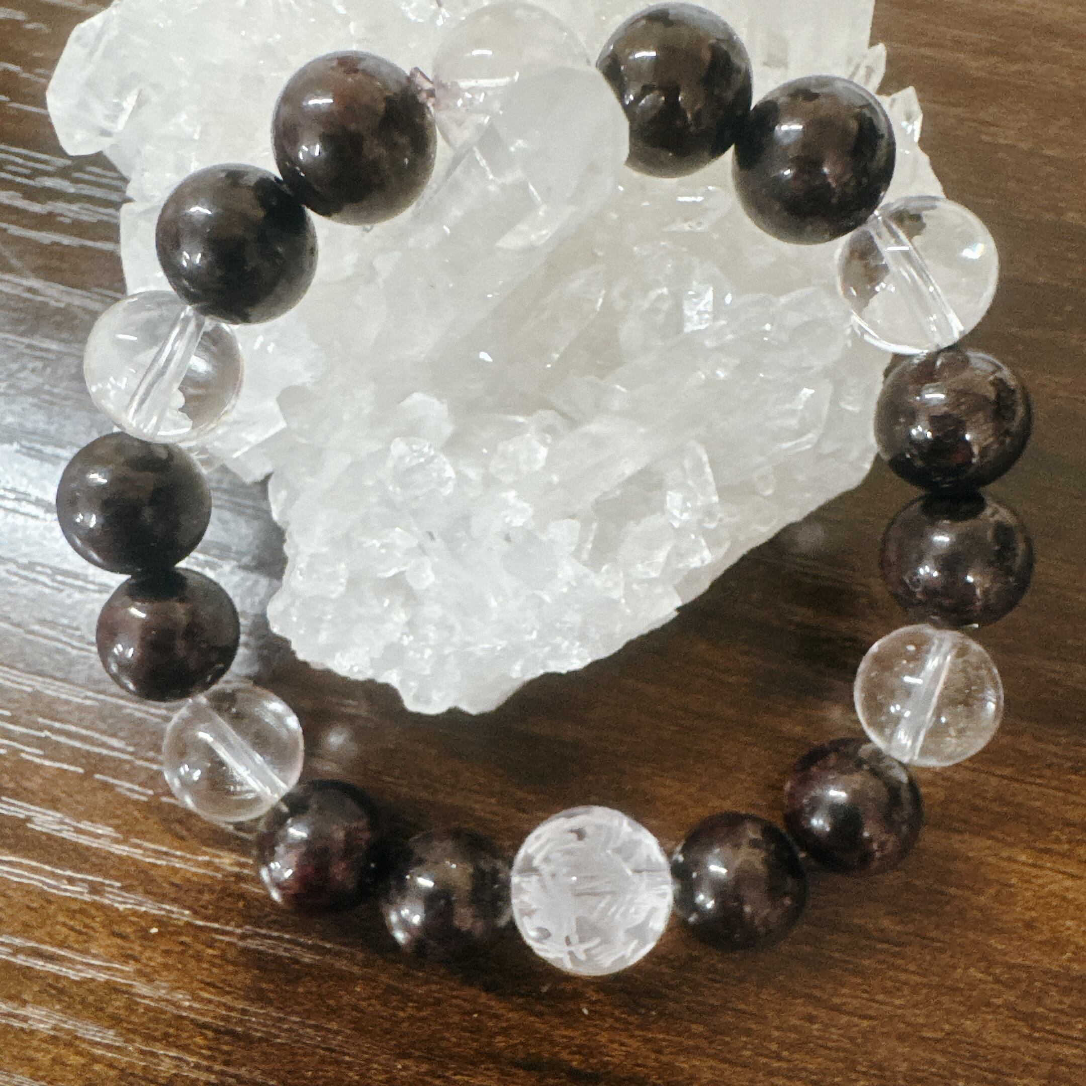 MARIN。オリジナルのガーネットと水晶のお守りになります。