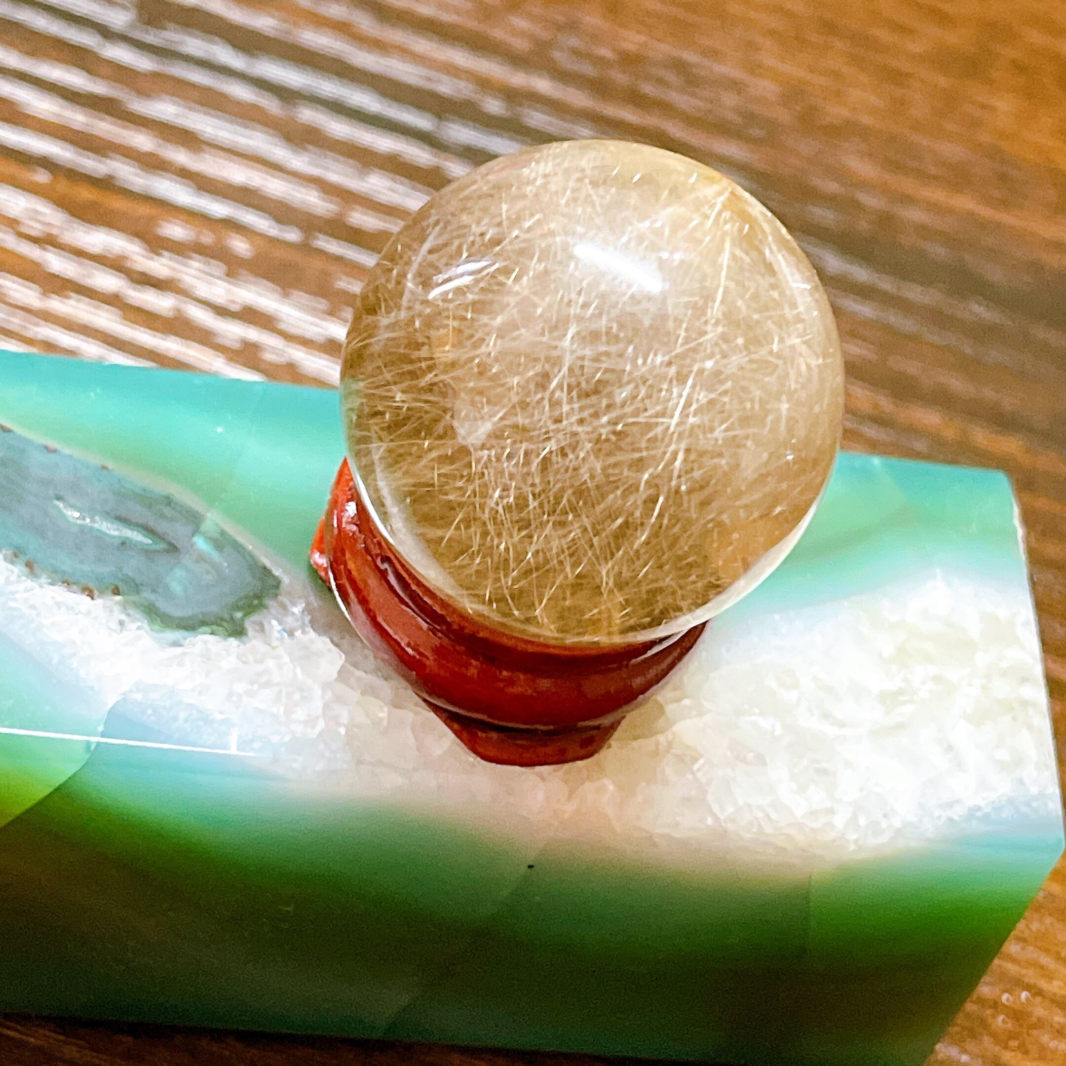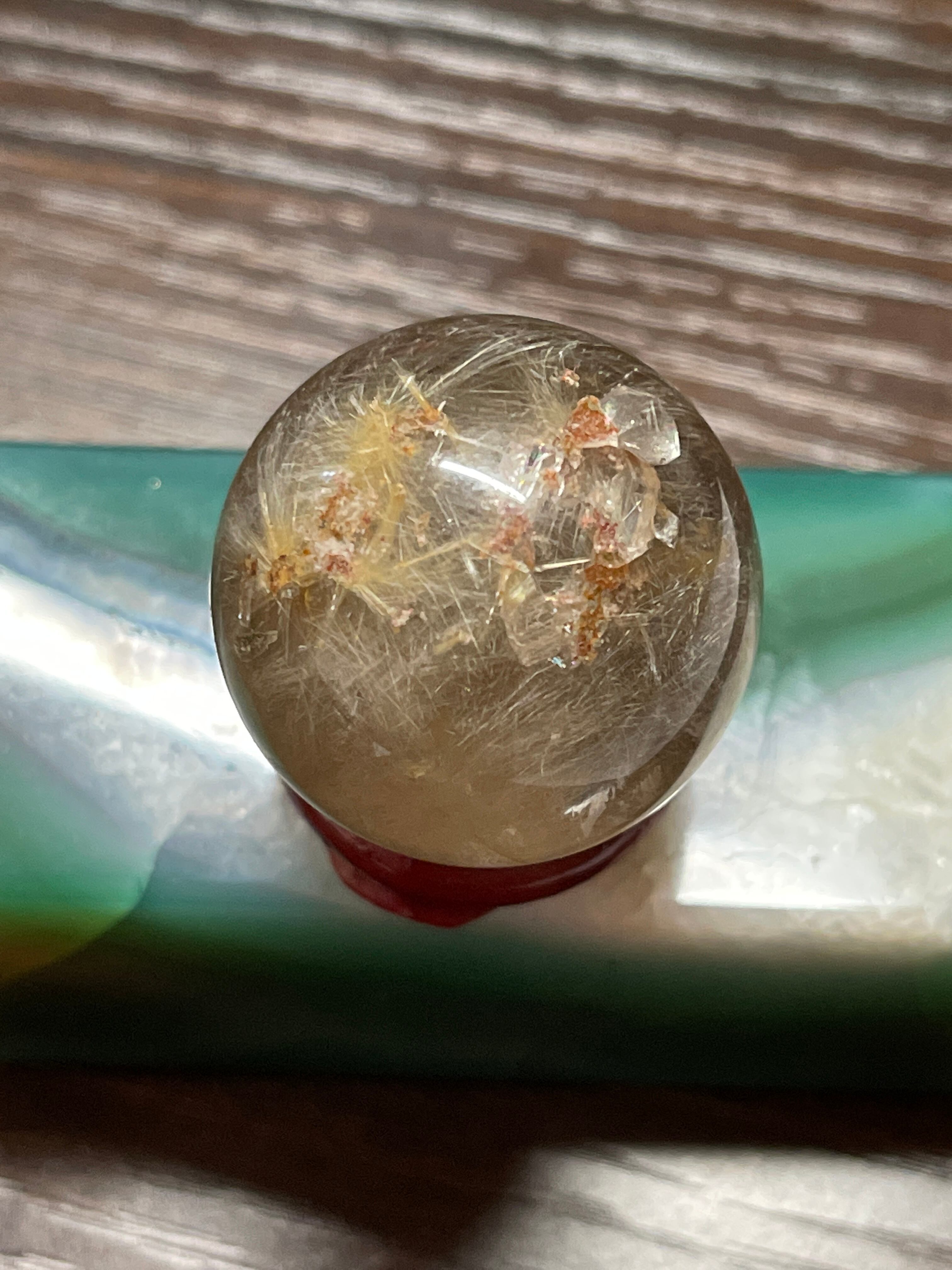 ルチル水晶丸玉になります。