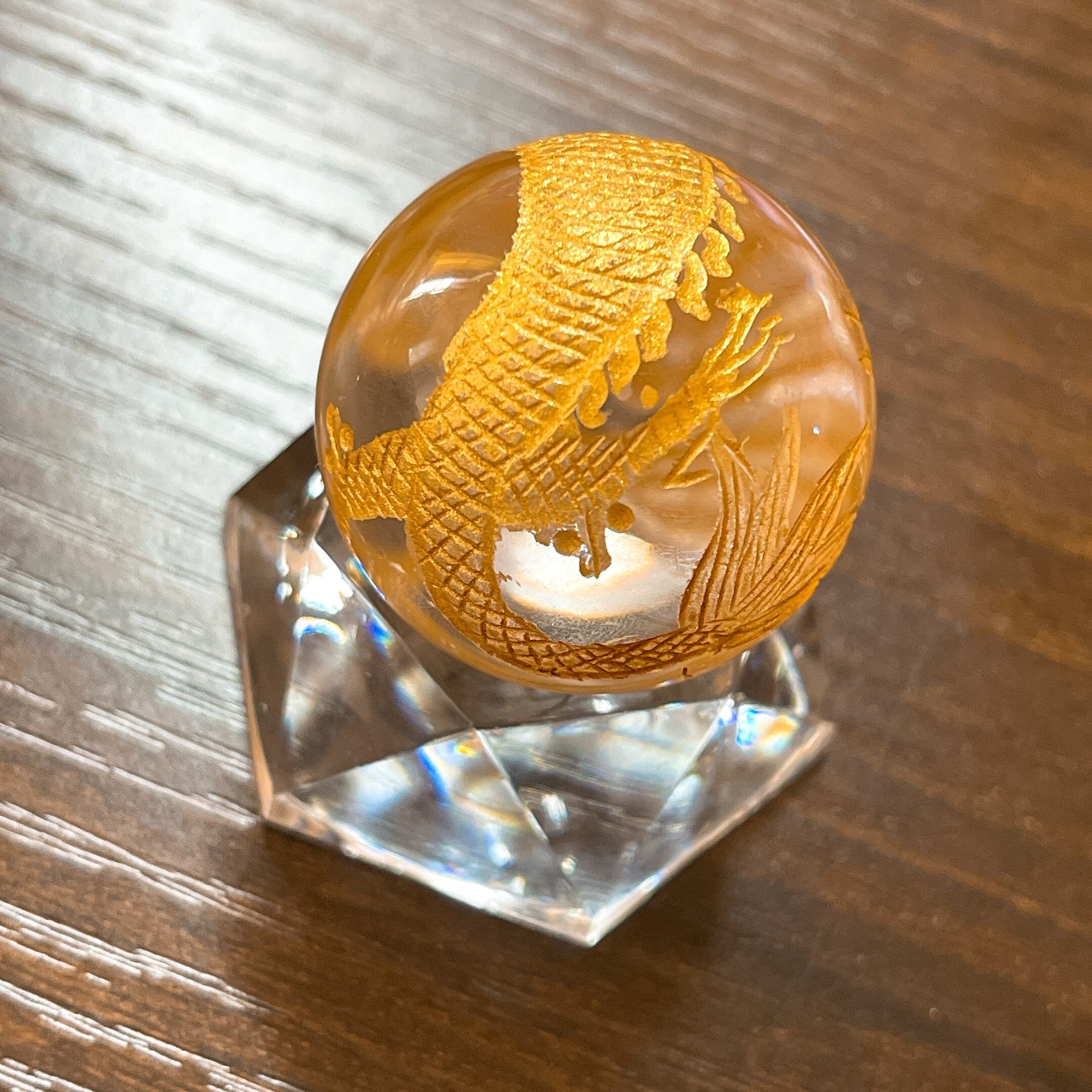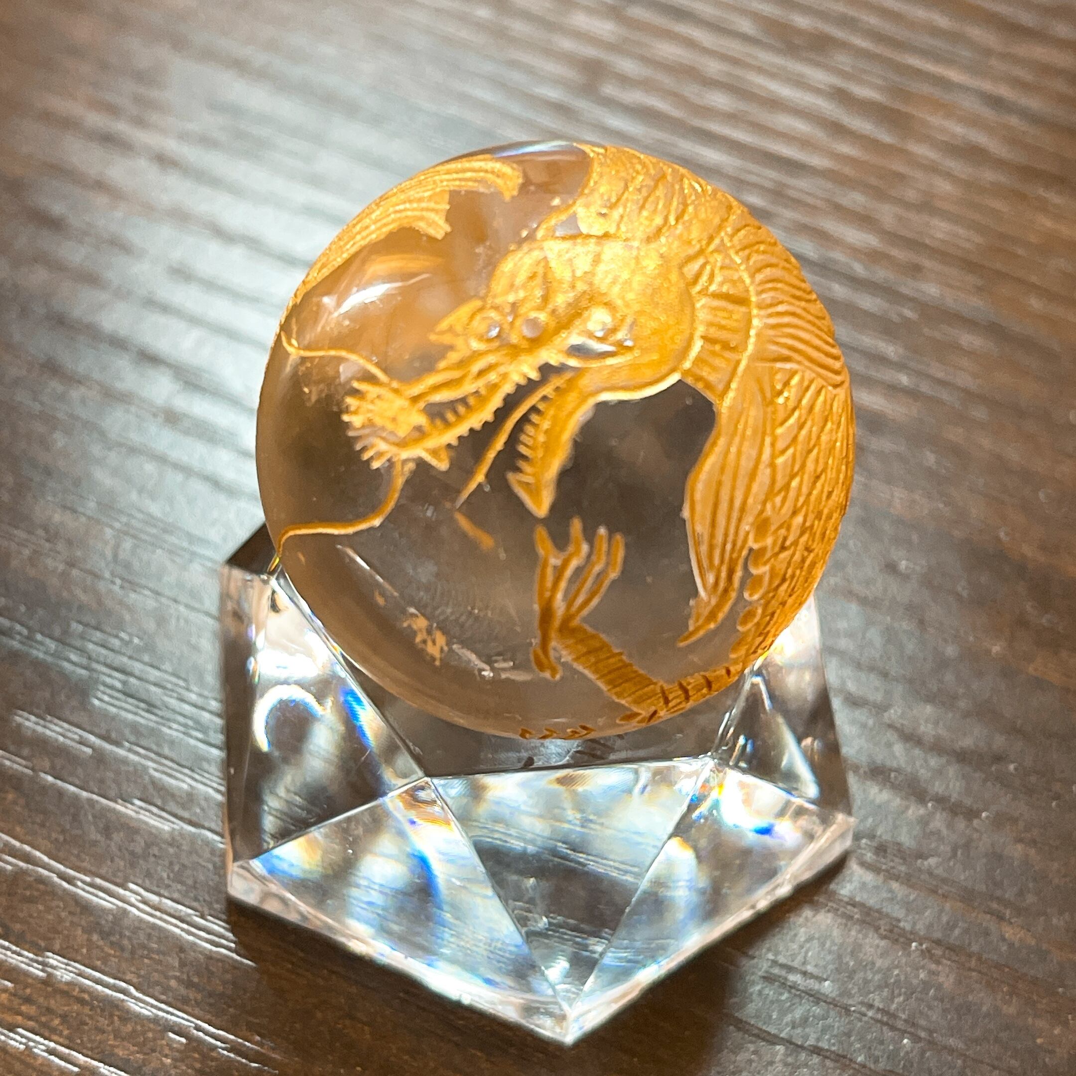 10/29 水晶丸玉【五爪龍神】金彫(3㌢)