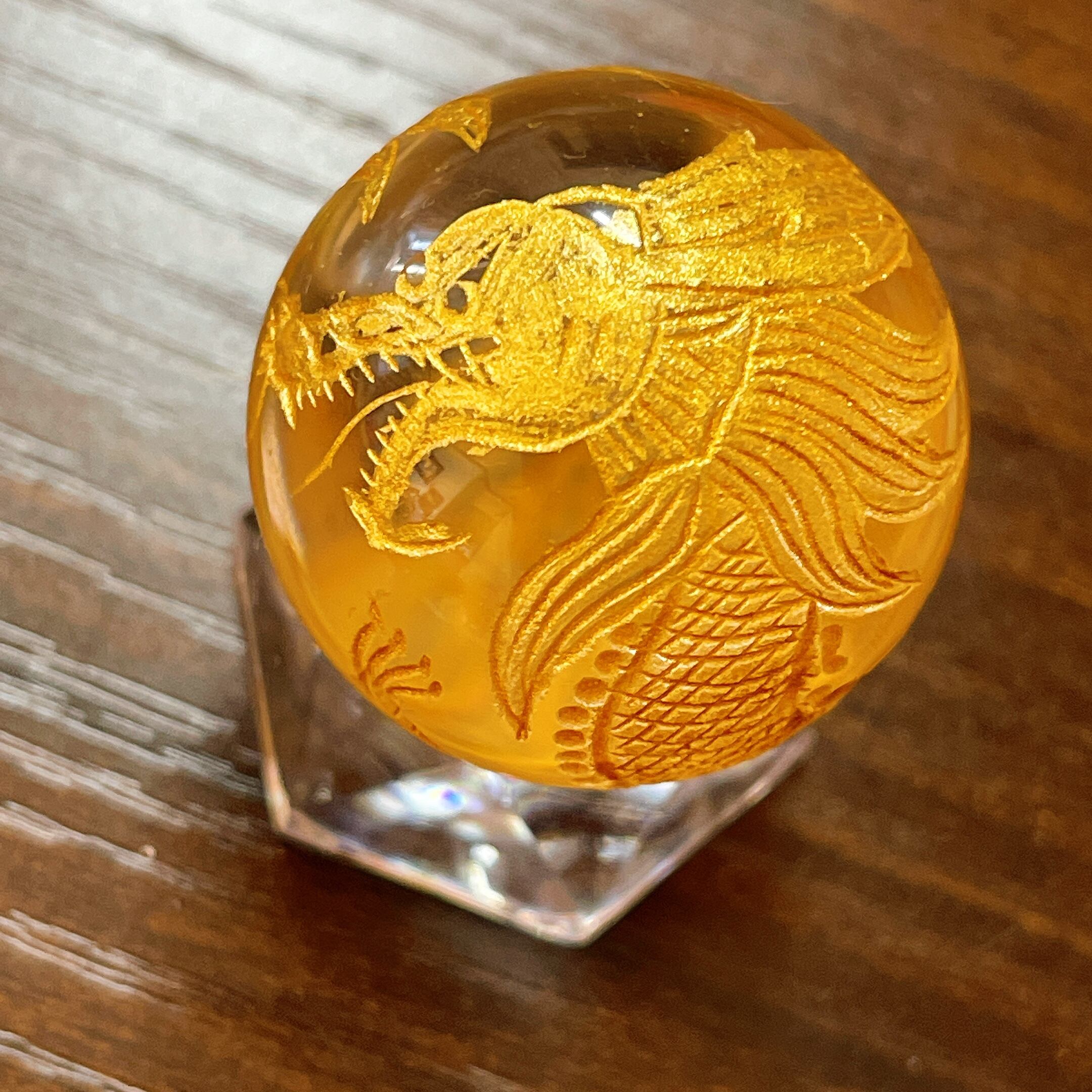 10/31【水晶丸玉】五爪龍神の金彫 (3㌢)