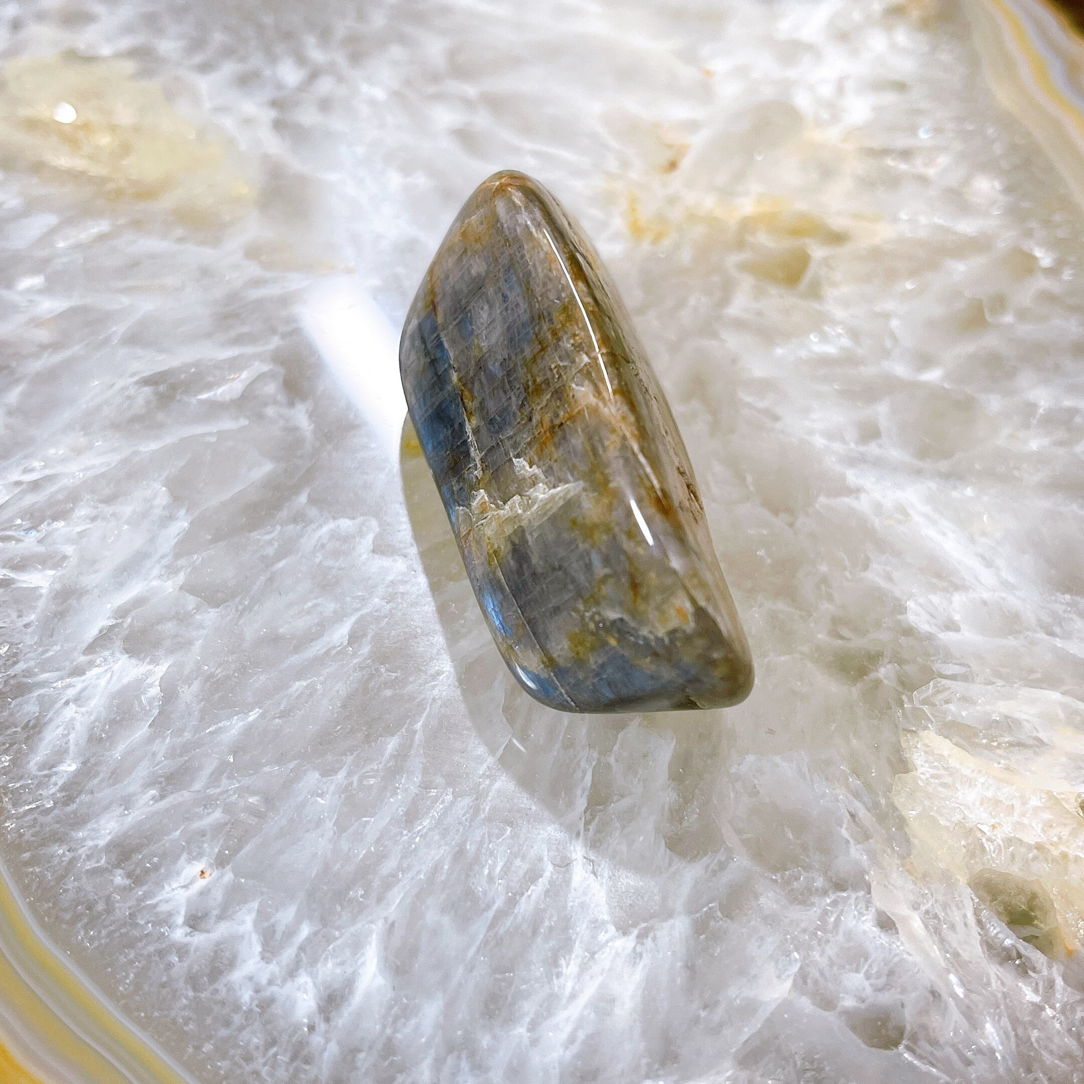 ムーンストーンの原石は、角度によってはブルーのシラーが顔をだします。