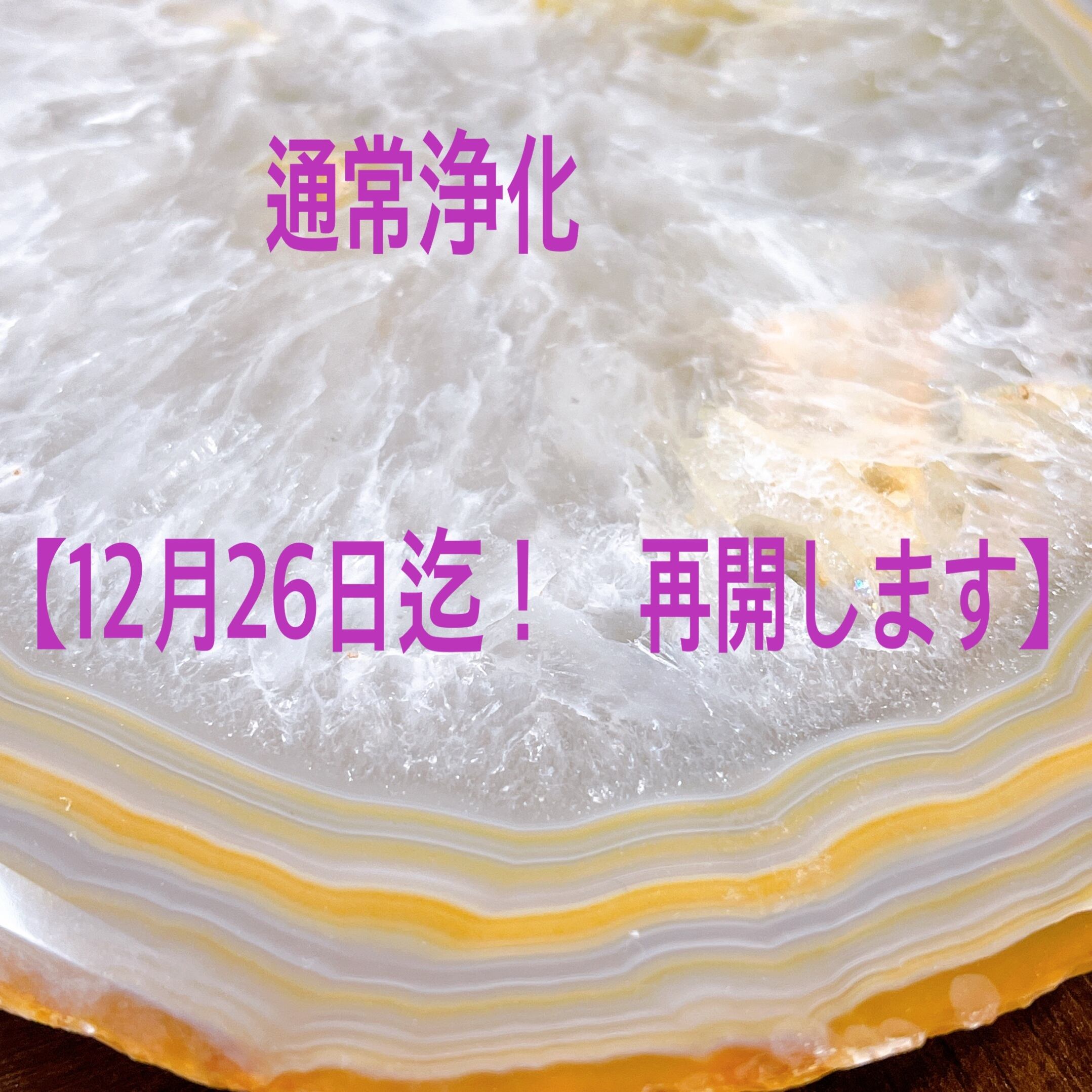 12月26日(日)迄、【通常浄化】を再開します。
