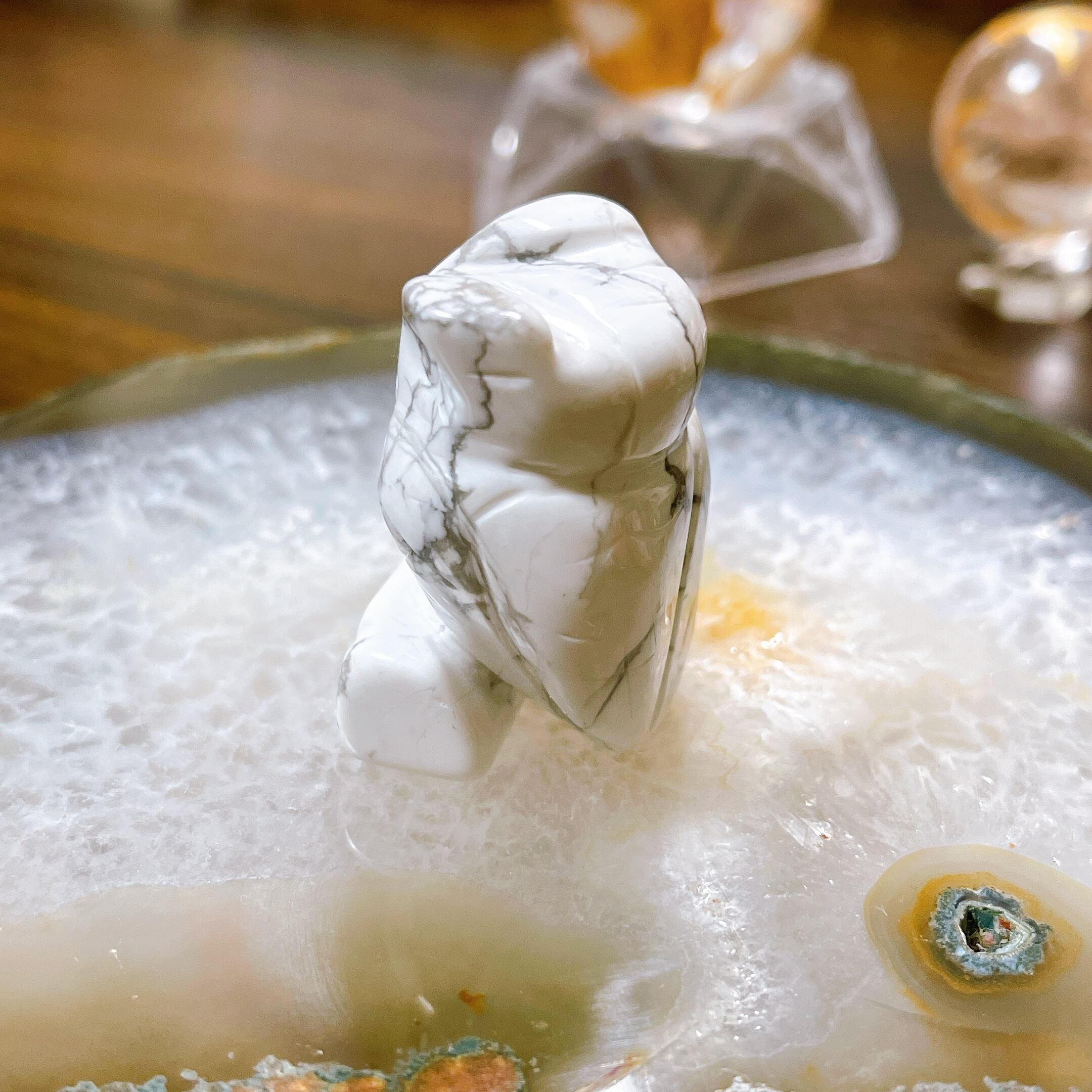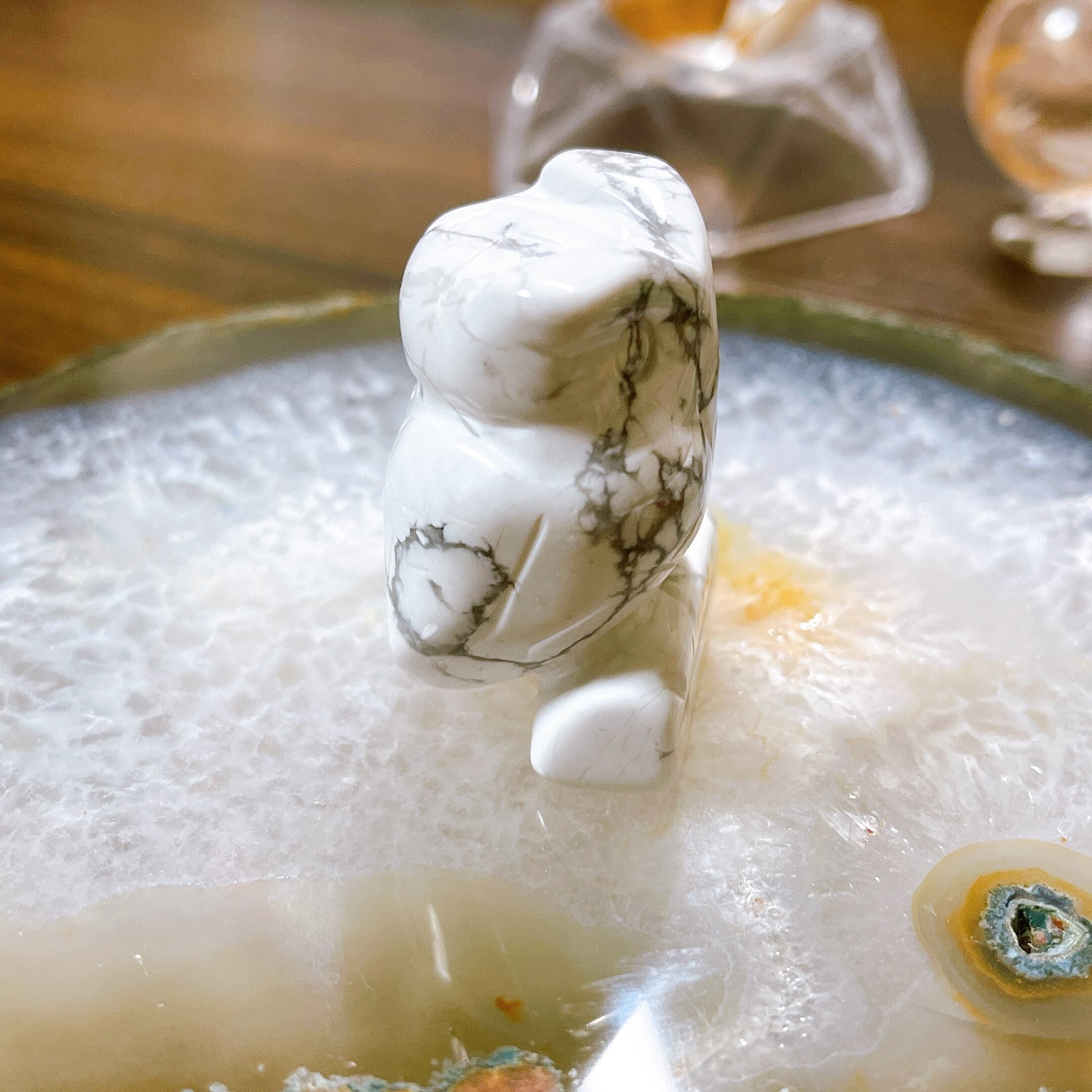 ハウライト石のミニフクロウちゃんになります。