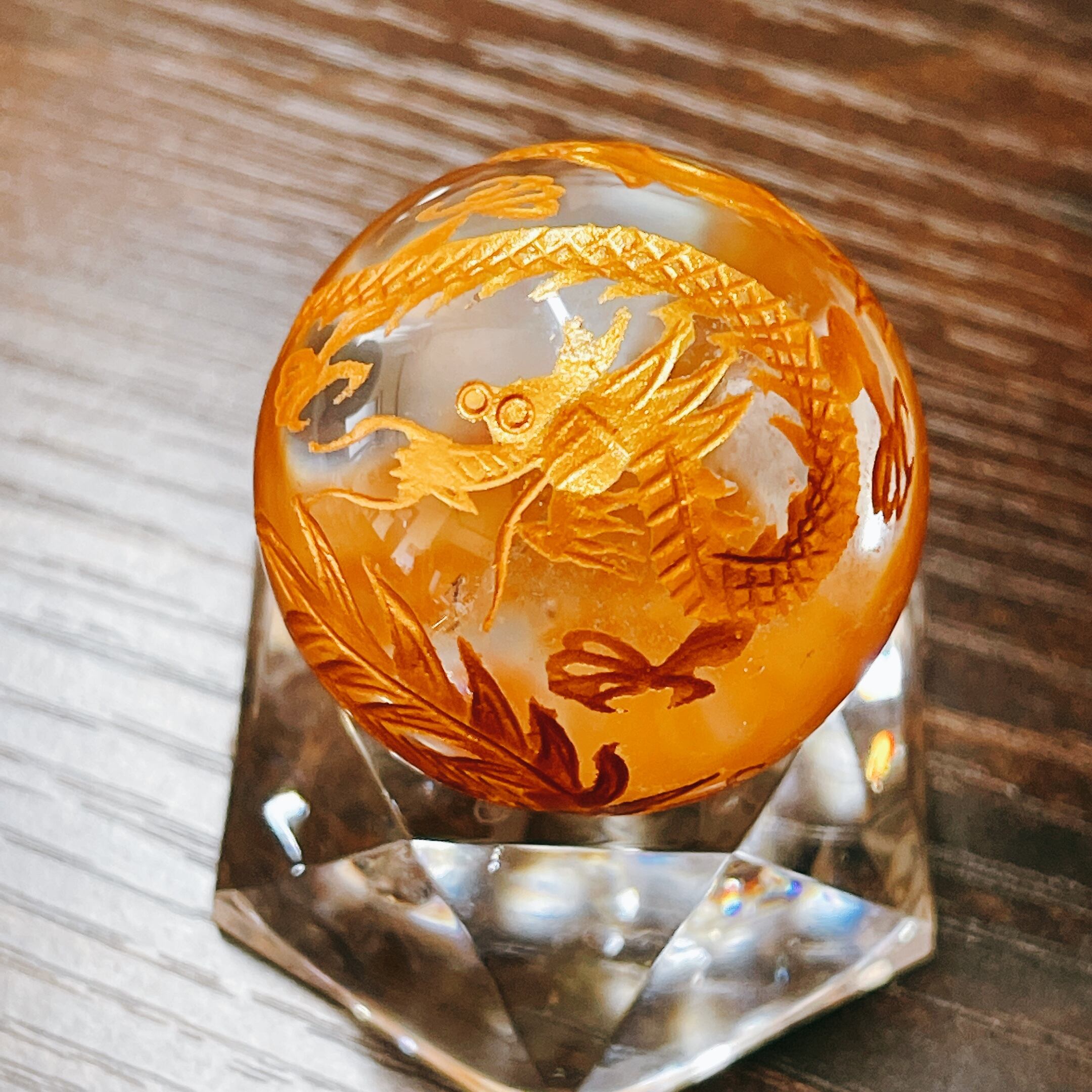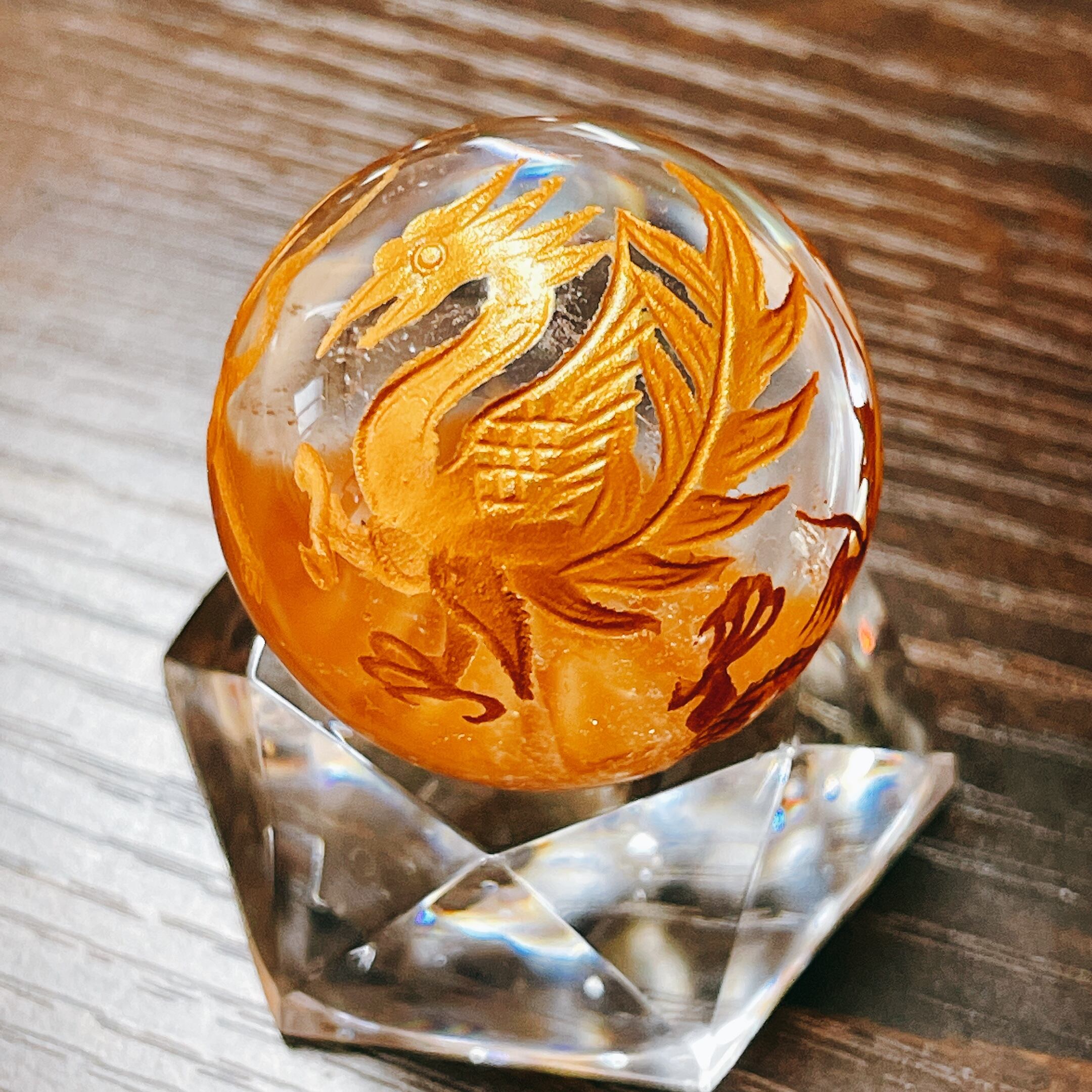 丸玉 水晶 約30mm (金彫り) 風水四神獣
