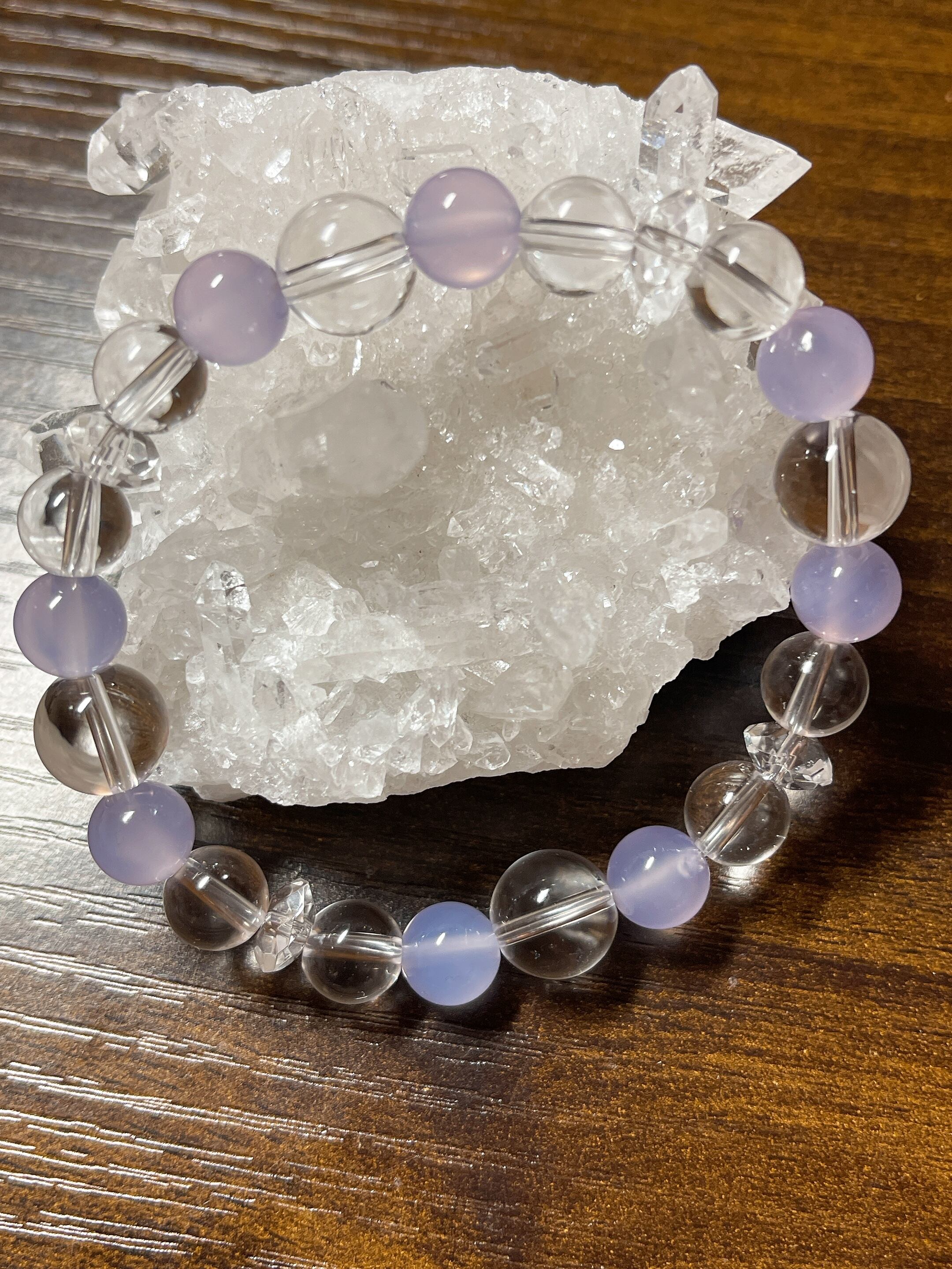 【ピンクカルセドニー+水晶】のお守りブレスになります。