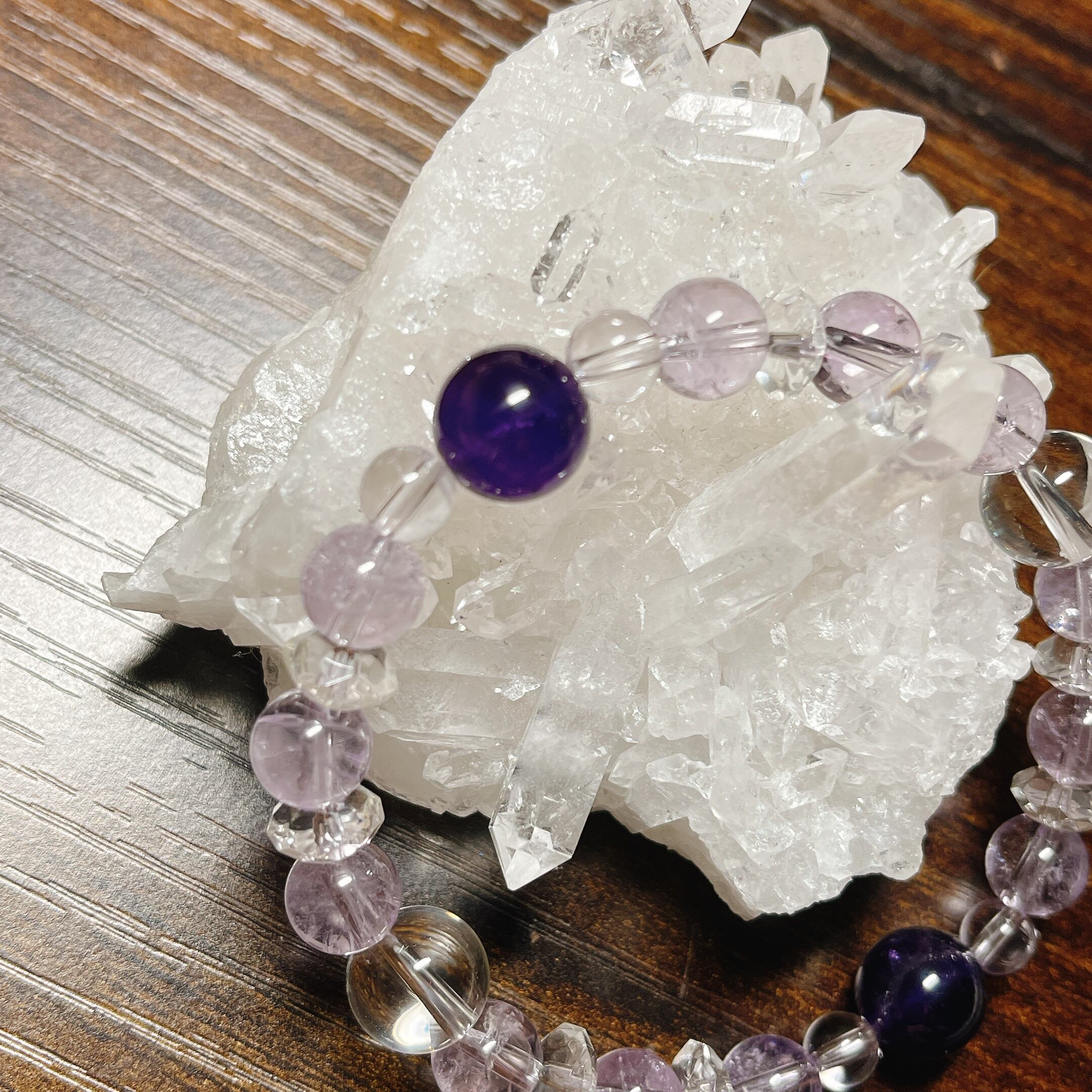 【アメジスト+ローズアメジスト+水晶】お守りブレス(3個限定)
