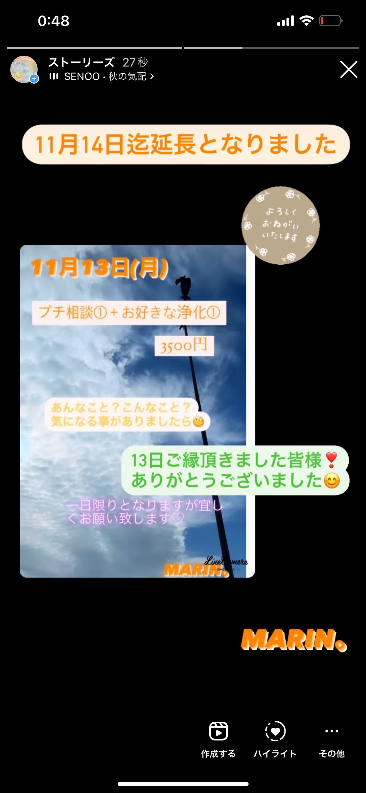【11月14日迄延長】プチ相談①+お好きな浄化① 3500円