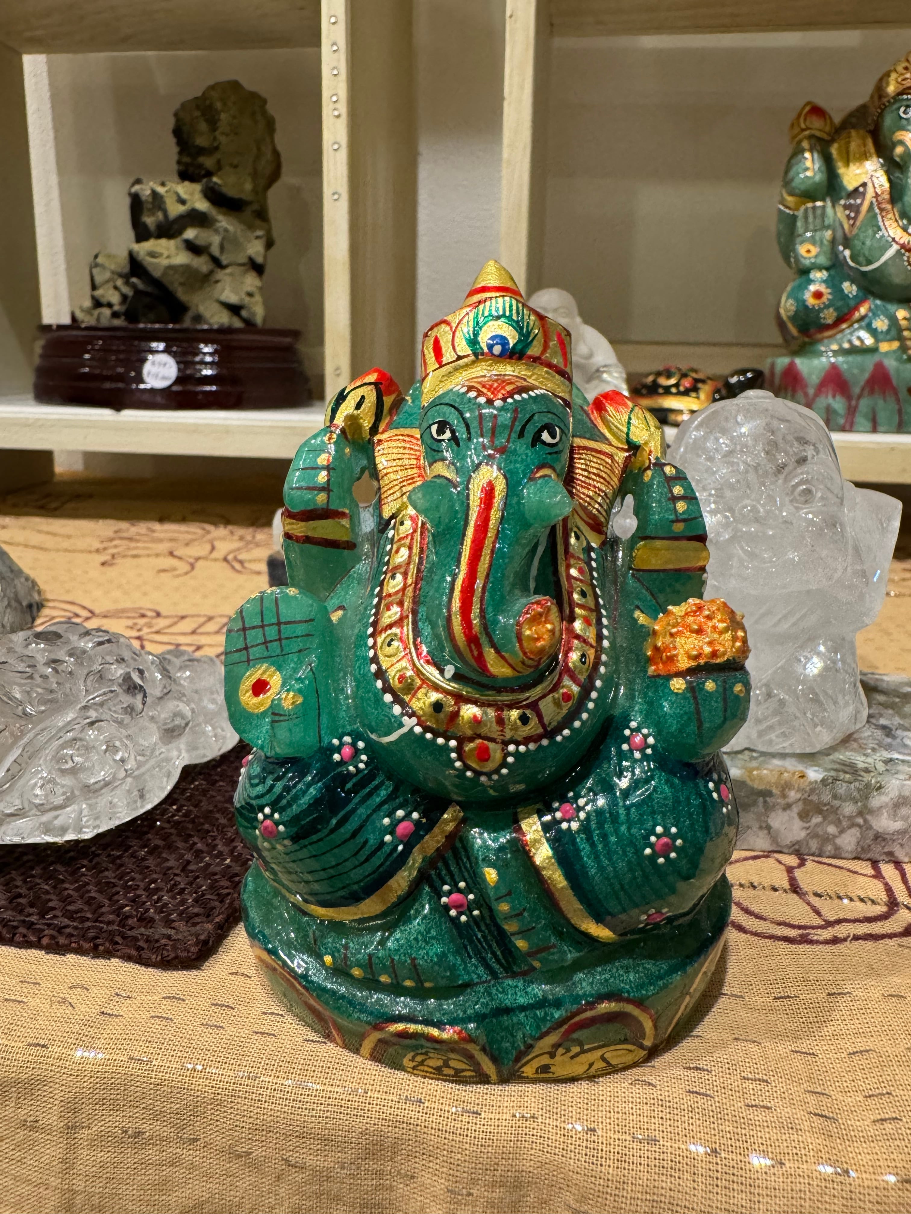 グリーンが綺麗なアベンチュリン石のガネーシャ様になります。