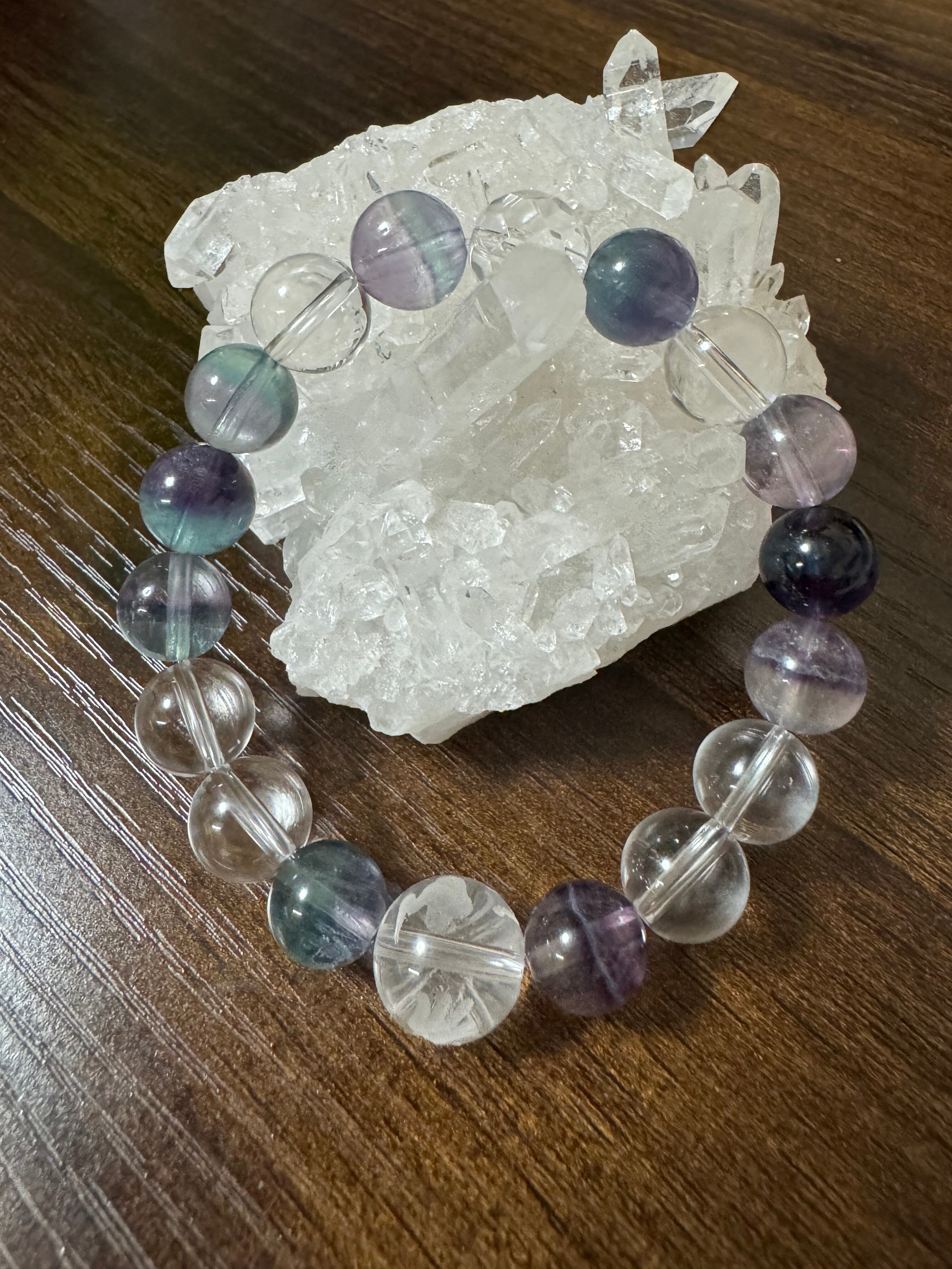 【フローライトと水晶】10㍉ブレスレッド